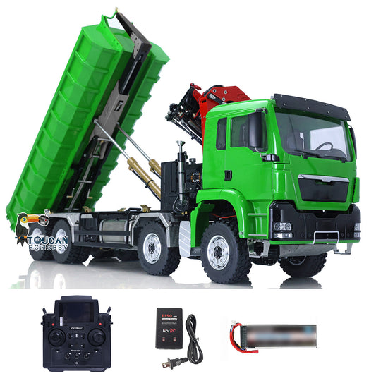 In Stock LESU 1/14 8x8 RC Dumper Hydraulic Tipper Truck Finished Crane Car Remote Control Vehicles Pump Valve