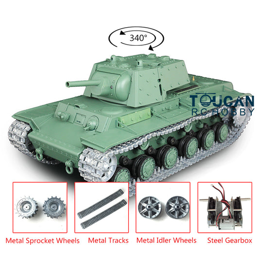 Henglong 1/16 Painted Upgraded 7.0 RC Tank Gigant Metal Military Tracks Soviet KV-2 RTR 3949 BB Shooting Infrared Combating