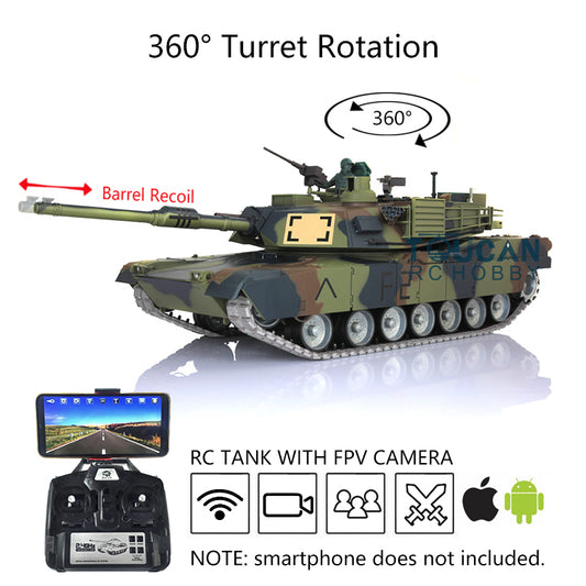 Full Metal 1:16 Painted RC Military Tank 3918 Abrams M1A2 TUSK II Ready to Run Track Car