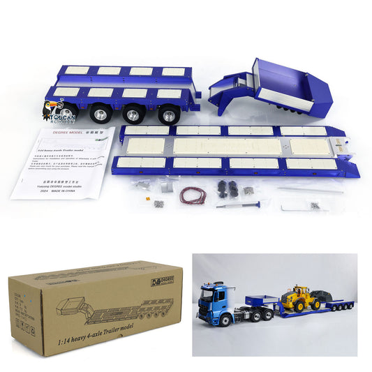 Degree 1/14 Aluminum Alloy RC Heavy Trailer DG-999 4 Axles CNC Gooseneck Trailer for Remote Controlled Tractor Truck Hobby Model Lights Servo Motor ESC