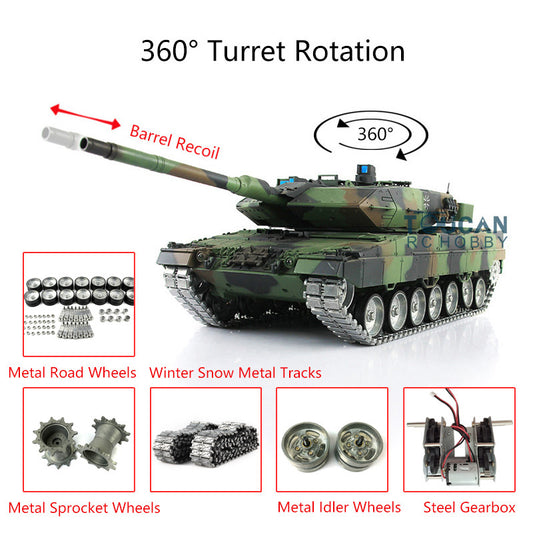 Henglong 1/16 7.0 Version Customized Leopard2A6 RC Tank 3889 w/ Metal Tracks FPV Barrel Recoil BB Shooting 360Degrees Rotating Turret