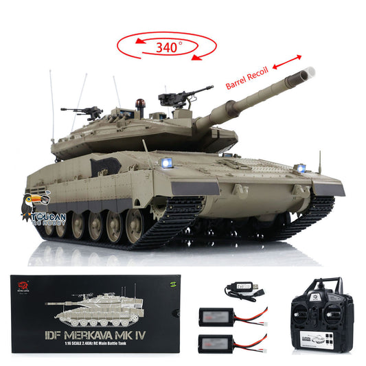 Henglong 1/16 RC Tank IDF Merkava MK IV 3958 Remote Control Battle Tank Metal Wheels Tracks Gearbox 360??Turret Smoke 2 Battery