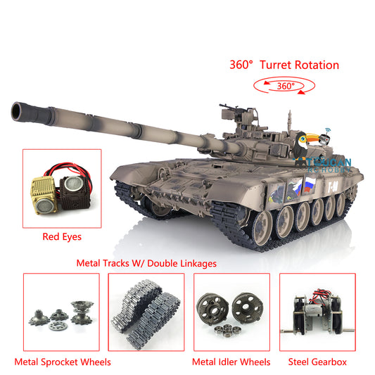 Henglong 2.4Ghz 1:16 7.0 Russian T90 RTR RC Tank 3938 Model W/ 360Degrees Turret Red Eyes Metal Tracks Linkages Idlers Sprockets