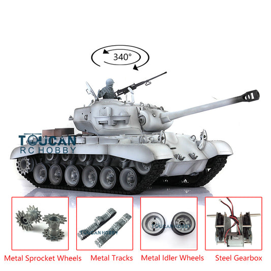 Henglong 1/16 7.0 Customized M26 Pershing RTR RC Tank 3838 w/ 360Degrees Rotating Turret Metal Tracks Idler Sproket Road Wheels Smoking