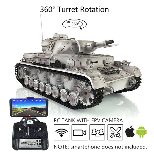 Henglong 1/16 RC Tank 3858 Upgraded Panzer IV F 7.0 RTR Radio Control Tank W/ 360Degrees Rotating Turret FPV Camera Metal Tracks Idler