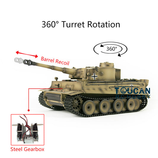 Henglong 1/16 Plastic German Tank 3818 Tiger I RC Tank 7.0 Version Battle Tank w/ 360Degrees Rotating Turret Barrel Recoil Steel Gearbox