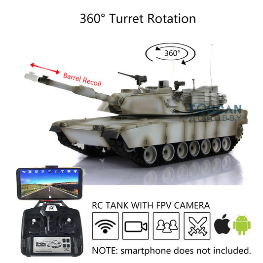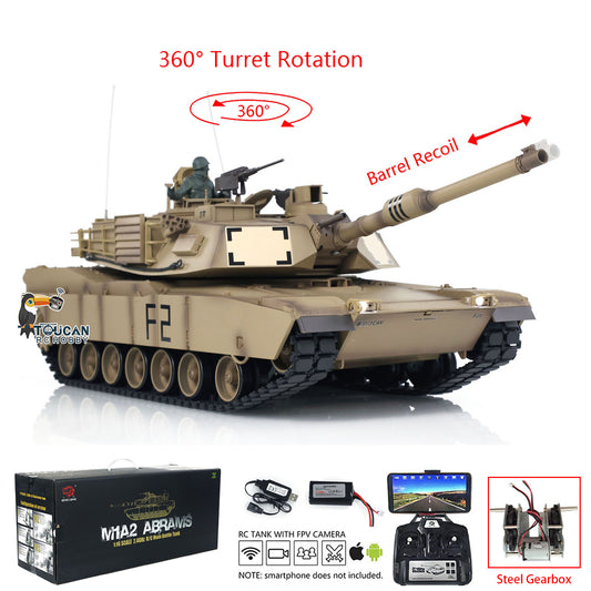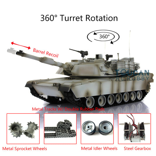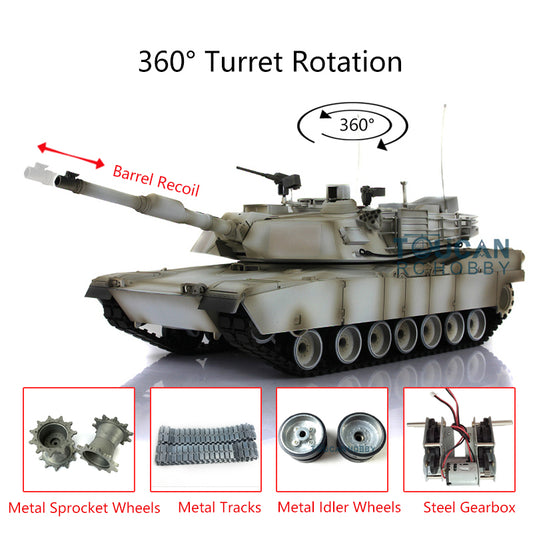 1/16 7.0 Henglong Abrams M1A2 RTR RC Tank 3918 360Degrees Turret Barrel Recoil Metal Tracks Wheels Rubber Pads Model