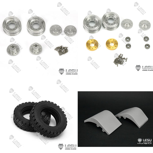 1Pairs 2pc Rubber Rear Front Wheel Tyre Metal Wheel Hubs Caps for 1/14 LESU RC Hydraulic Construction forklift Model Car DIY Truck