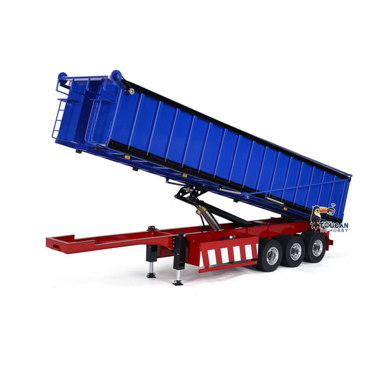 Metal 1/14 3 Axles Hydraulic Dump Trailer Electric Awning Legs RC Tractor Truck Emulated Car Model Construction Vehicle Light Pump