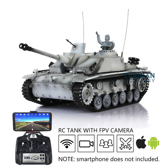 Henglong 1/16 Upgraded 3868 RC Tank 7.0 German Stug III w/ FPV Camera Phone Holder Metal Tracks Idler Sproket Wheels Smoking