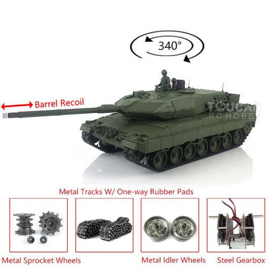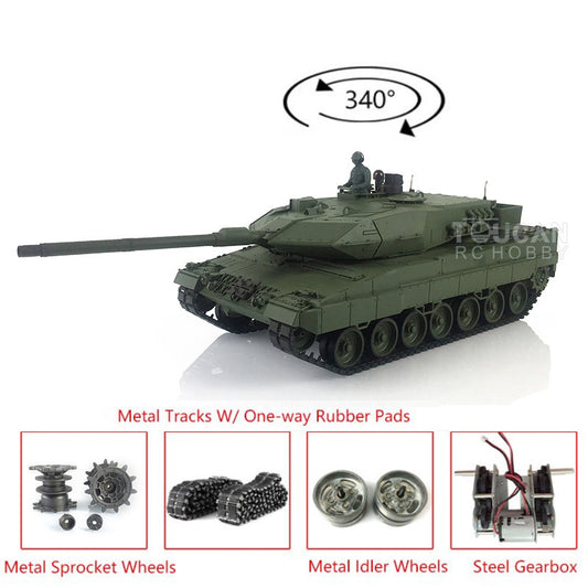 Heng Long Remote Control Tank 1/16 TK7.0 Leopard2A6 3889 Barrel Recoil Metal Track W/ Linkages Driving Gearbox 360 Rotating Turret