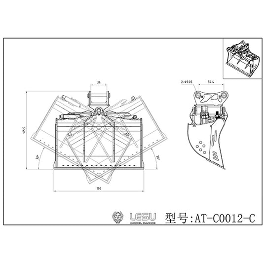 Metal Tiltable Bucket Grab Grapple Quick Detachable Fixed Mount Crusher for 1/14 LESU Aoue ET35 RC Hydraulic Excavator Model