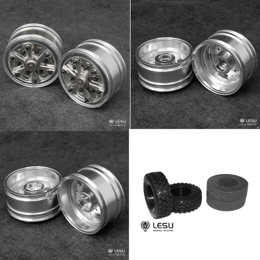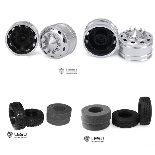 LESU Trailer Metal Unpowered/ Powered Front Wheel Hub A B Rubber Tires Tyres for 1/14 RC DIY Tamiiya Model Tractor Truck Car Parts