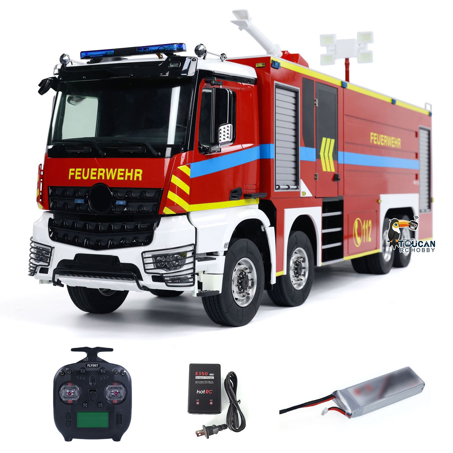 8x4 1/14 Scale Metal RC Fire Fighting Truck Chassis Radio Control Fire Car Light Sound FlySky ST8 Motor Servo Assembled Painted