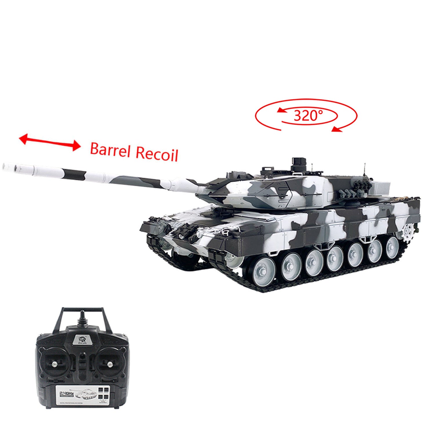 10.2.4GHz radio control system prevents signal interference, allowing multiple tanks to battle simultaneously.