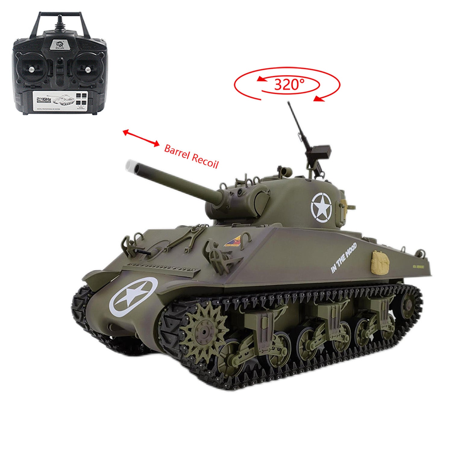 Plastic Henglong 1/16 7.0 RC Tank M4A3 Sherman 3898 320 Degrees Turret Barrel Recoil BB IR Smoking Steel Gearbox Battery 2.4G Radio