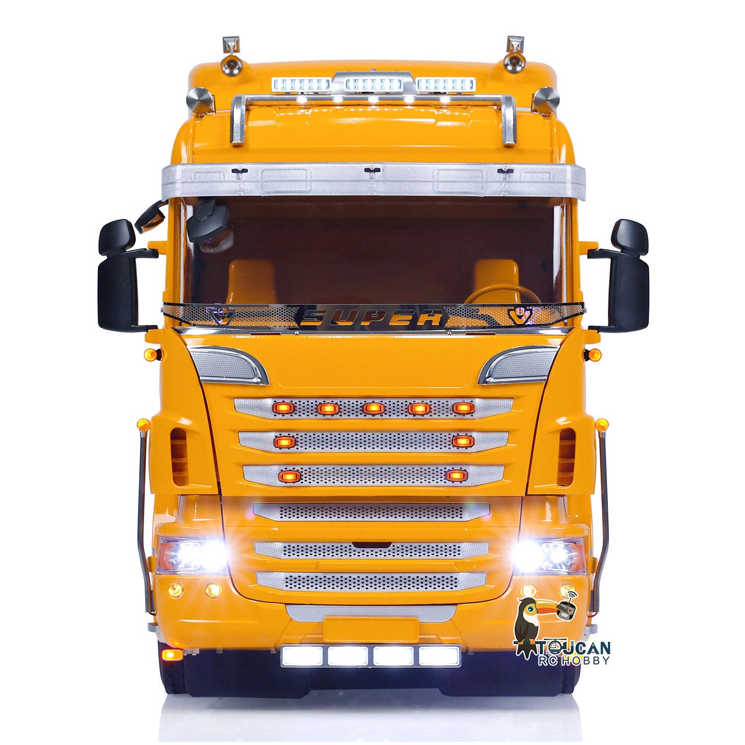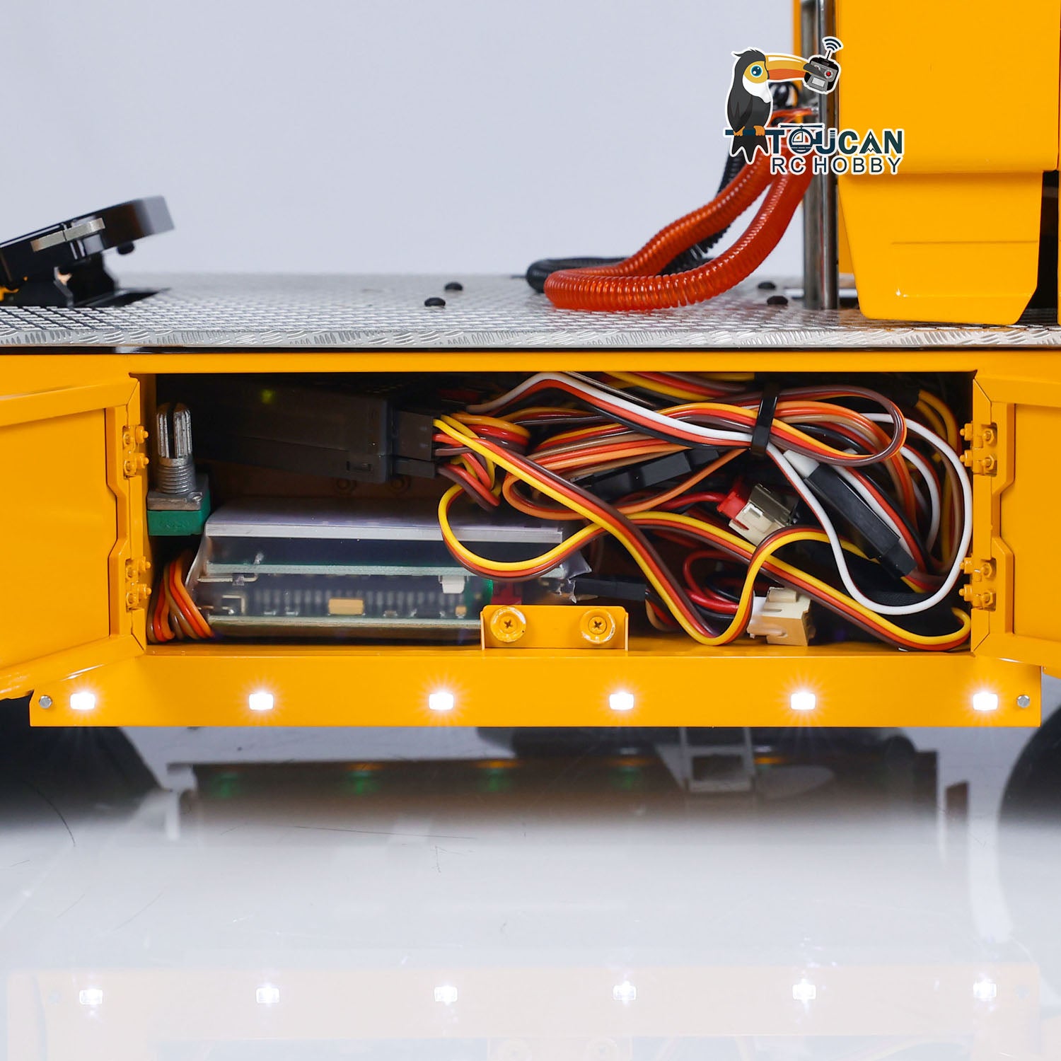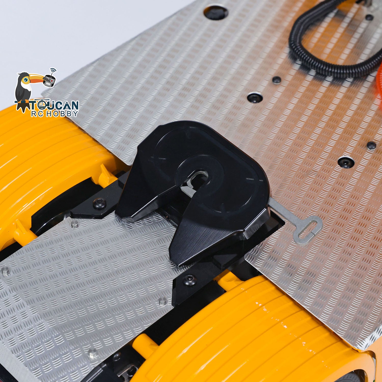 1. Metal Chassis, Axles, Drive Shafts, and Hubs: The RC tractor truck model features a robust TOUCAN metal chassis that enhances durability and realism. All essential components like the axles, drive shafts, and wheel hubs are constructed using high-quality metal for added strength.