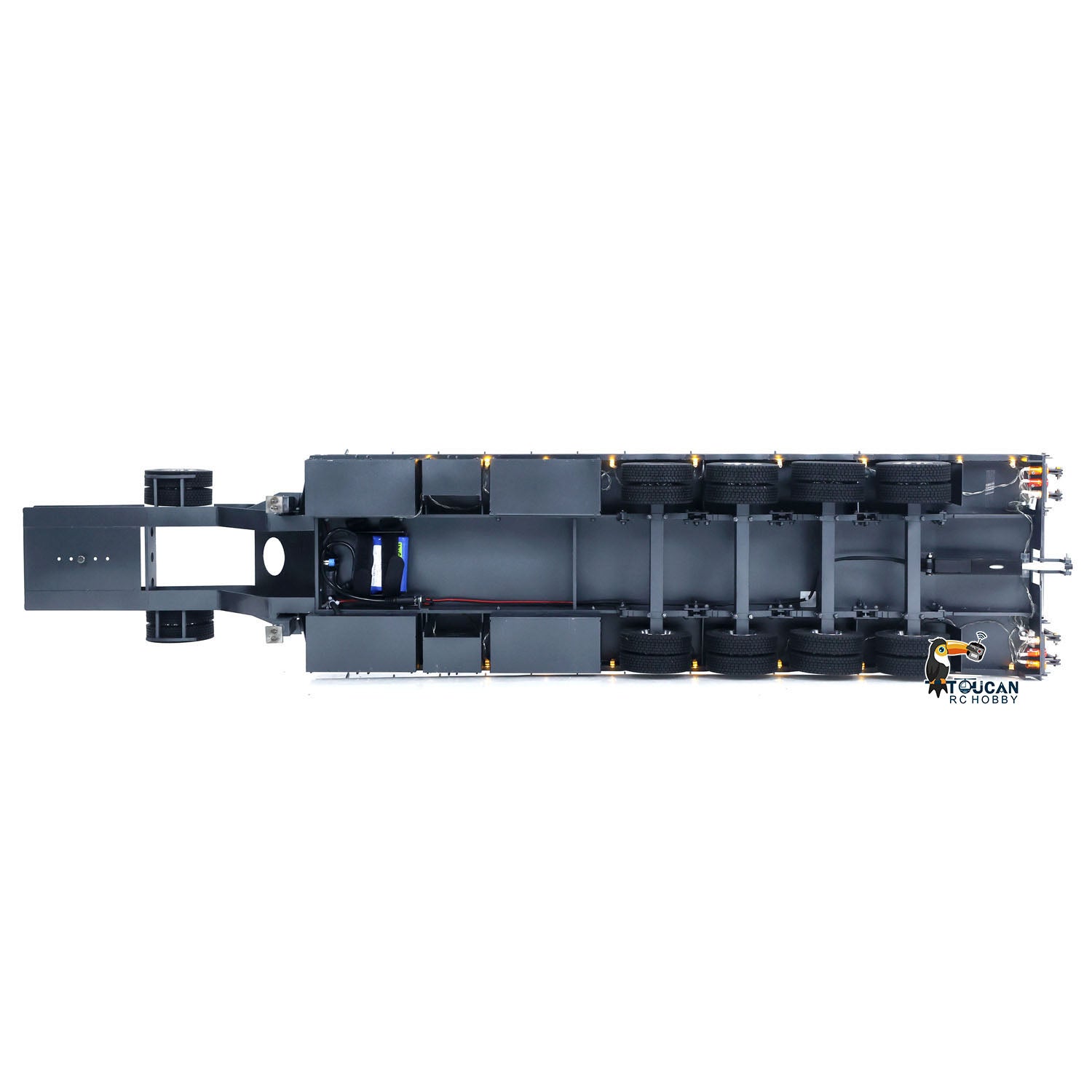 Metal 4 Axles Trailer for 1/14 JDM 189 RC Tractor Remote Controlled Semi-Trailer Truck with Electric Tail-board Painted Assembled
