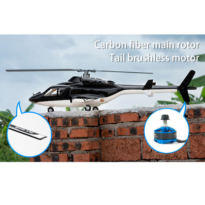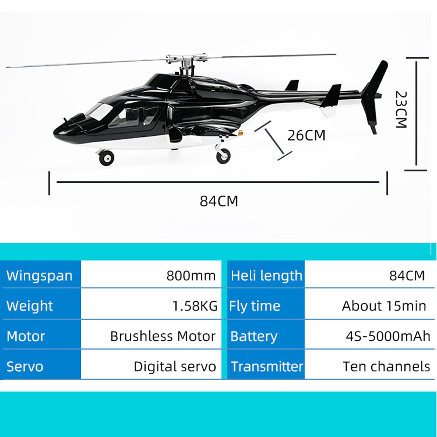 3.The helicopter is made durable and robust with carbon fiber main rotor,tail brushless motor,FBL metal rotor head,aerodynamic tail and build-in H1 flight control system.