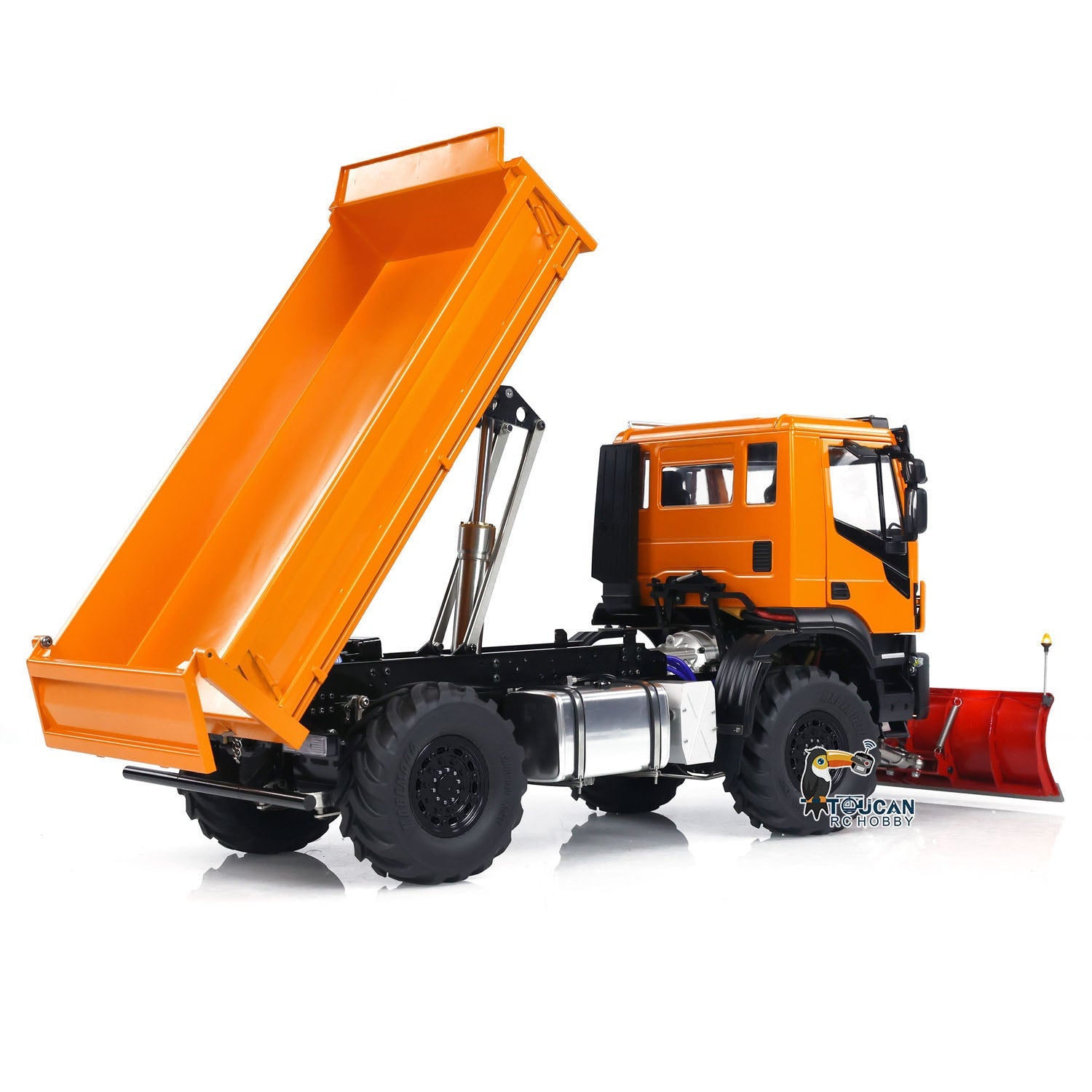 4*4 1/14 Metal RC Hydraulic Dumper Trucks Snow Shovel Remote Control Tipper Cars Special Version FlySky ST8 Sound Light LED