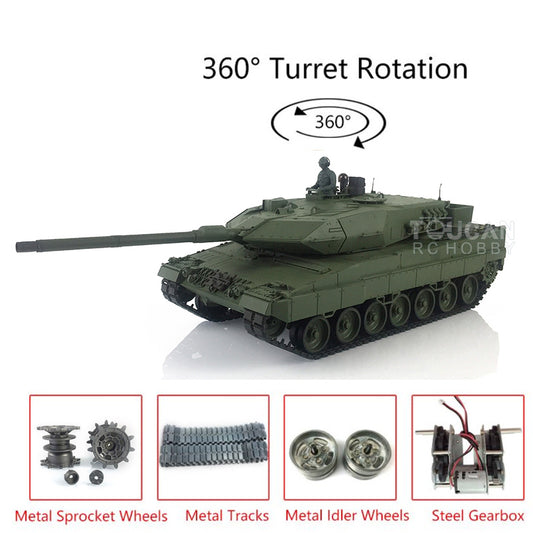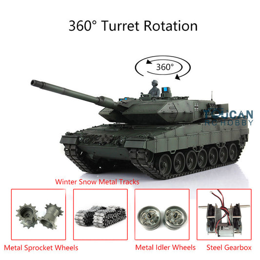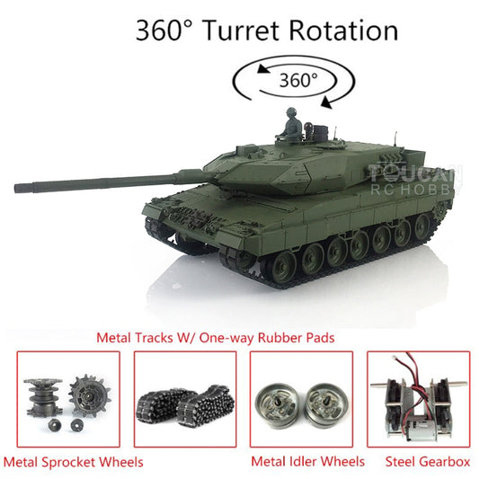 Henglong 1/16 TK7.0 German Leopard2A6 Military RC Tank 3889 W/ 360Degrees Rotating Turret Metal Tracks Sprocket Hobby Grade Collection