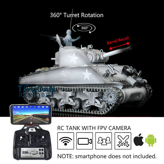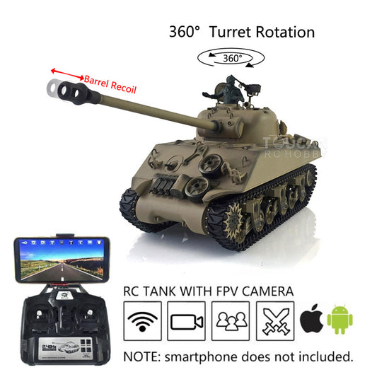 Henglong 1/16 FPV 7.0 M4A3 Sherman RTR RC Tank 3898 w/ 360Degrees Rotating Turret Barrel Recoil FPV Camera Metal Tracks Engine Sound