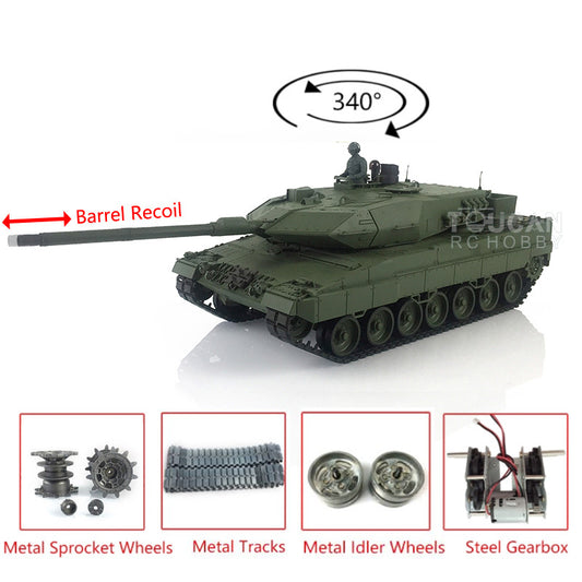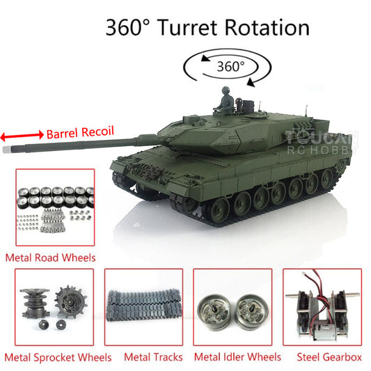 Henglong Military Tank 1/16 TK7.0 Leopard2A6 RC Tank Upgraded 3889 Barrel Recoil 360 Rotating Turret Metal Tracks W/ Rubber Pad