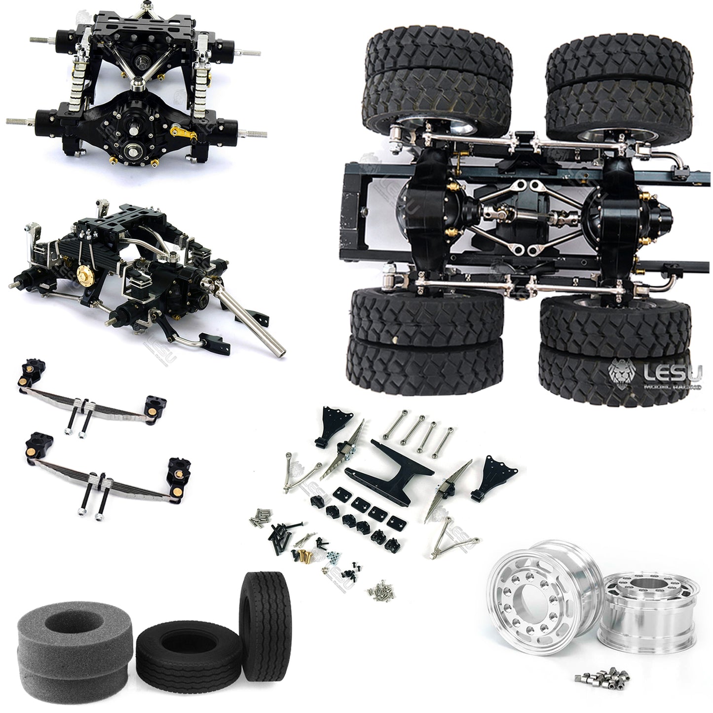 LESU Metal Flange Front Rear Axles Differential Lock Suspension Wheel Hub Tires for 1/14 Tamiiya Truck Tractor Remote Control Dump