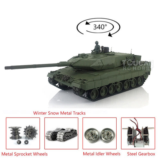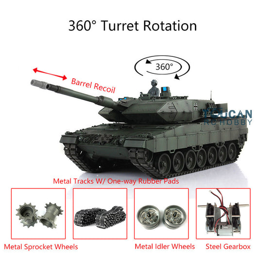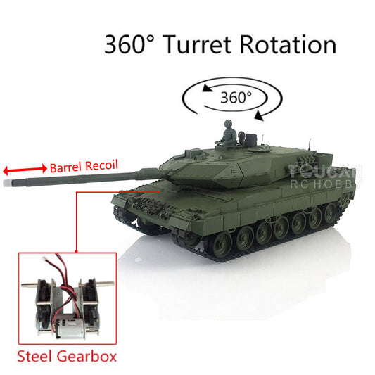 Henglong 1/16 TK7.0 Edition Upgraded Leopard2A6 RC Tank 3889 W/ 360Degrees Rotating Turret Barrel Recoil Metal Driving Gearbox Tracks