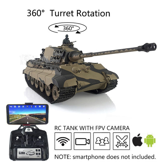 Henglong 1/16 RC Tank 3888A 7.0 Upgraded King Tiger Radio Control Tank w/ FPV 360Degrees Rotating Turret Metal Track Idler Sproket Wheel