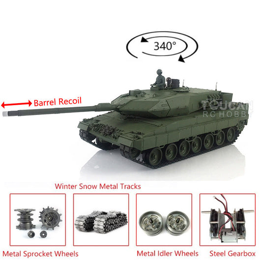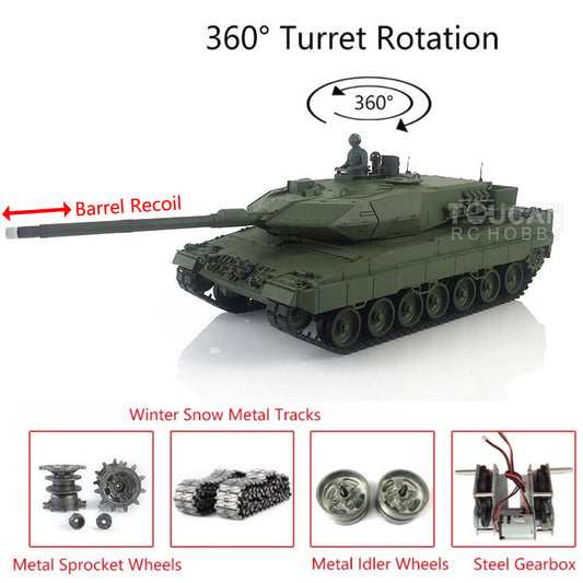 Heng Long 1/16 Scale 2.4Ghz TK7.0 Generation Leopard2A6 RC Battle Tank 3889 Barrel Recoil Metal Linkages Tracks Sprockets Idlers