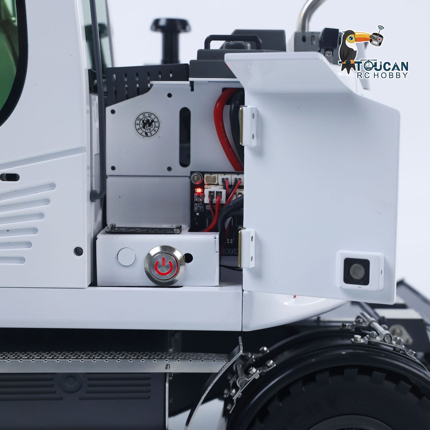 Metal 1:14 RC Hydraulic Wheeled Excavator LR914 Radio Control 8CH Valves Digger Model Front Axle Lock Flysky PL18EV Lite Lights