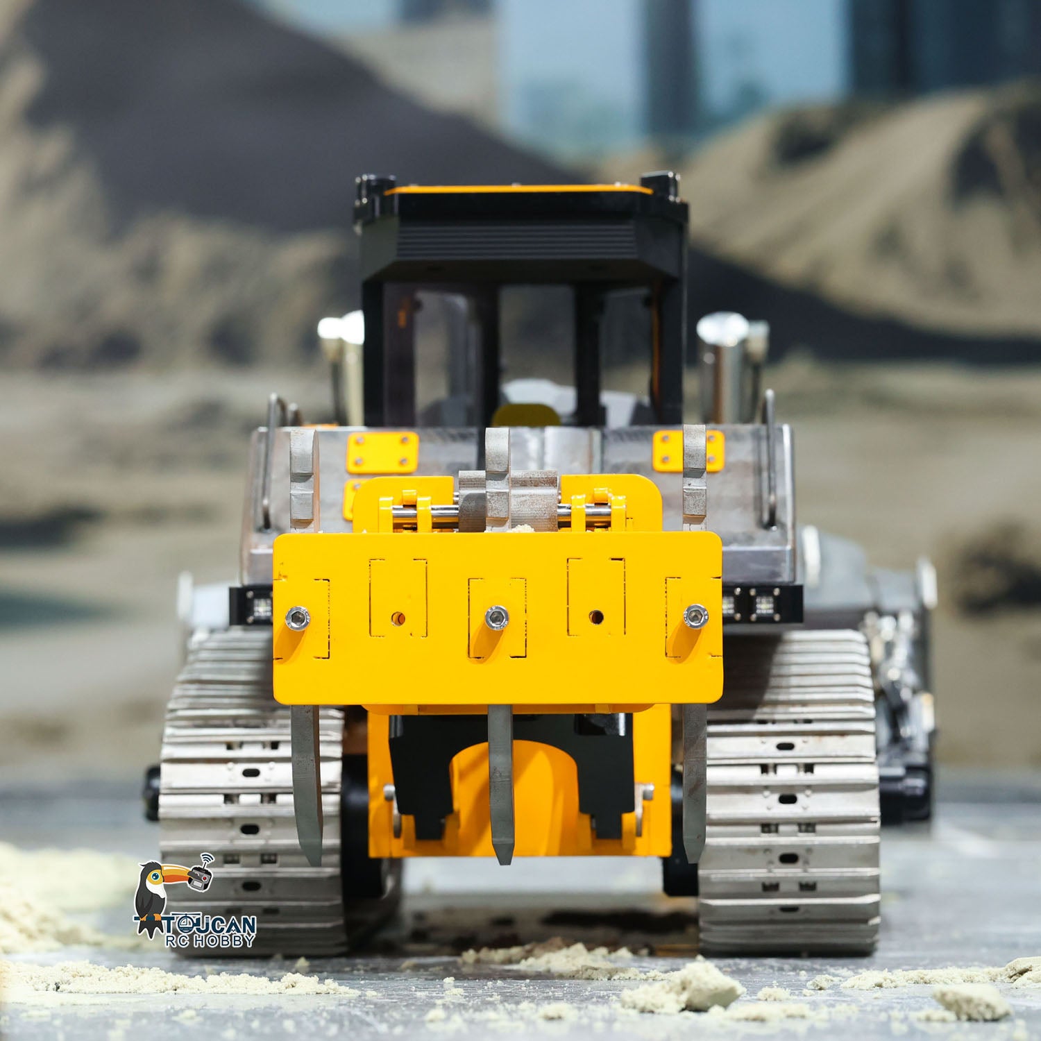 2. This is a rare remote controlled hydraulic bulldozer equipped with a 7-channel metal directional control valve, with 3 channels reserved for optional attachment upgrades. Additionally, its rear plow is configured with 5 shanks, allowing you to adjust the number of active shanks as needed