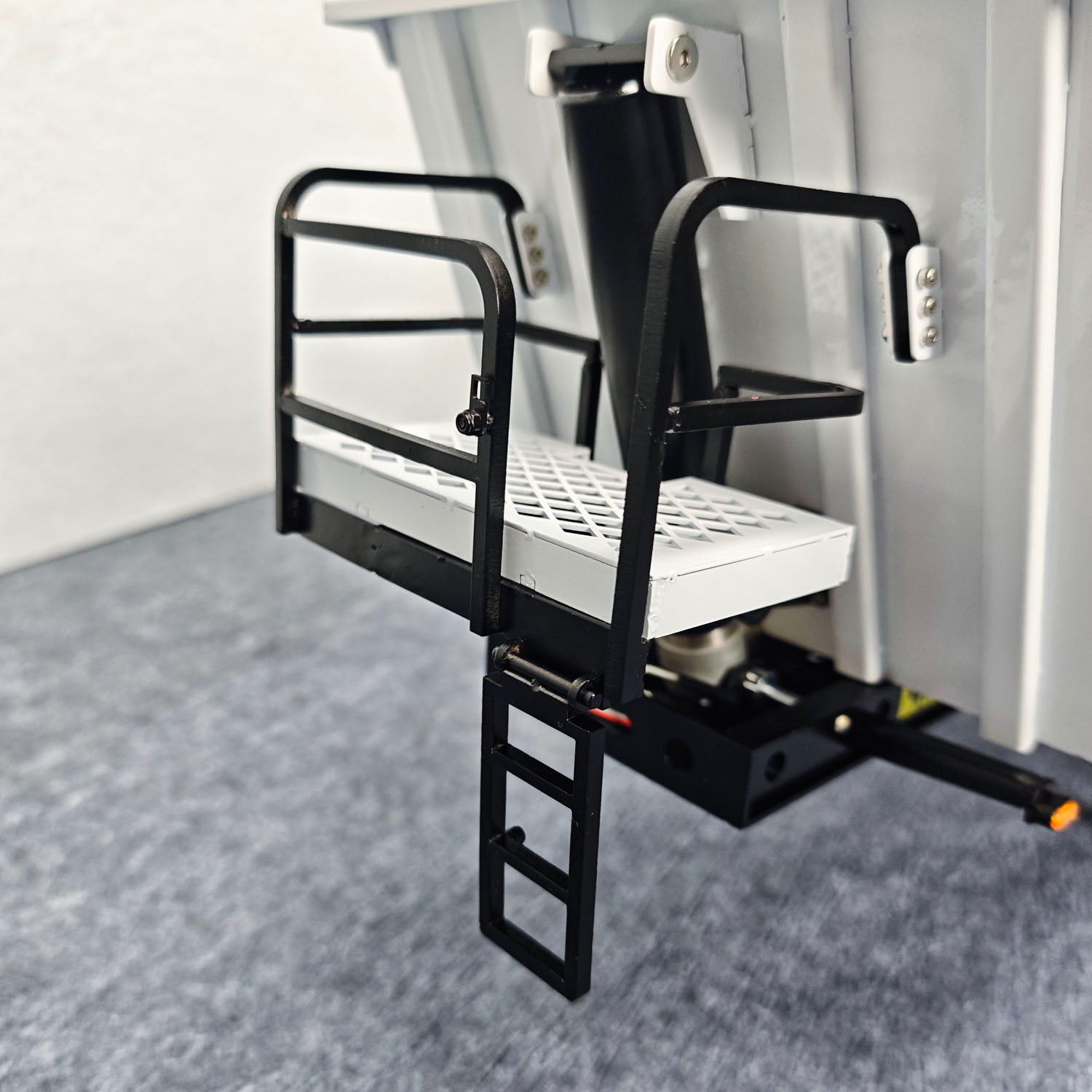 2. Equipped with front five-stage hydraulic cylinders, it includes all hydraulic accessories and a battery. Simply plug into the receiver to start using.