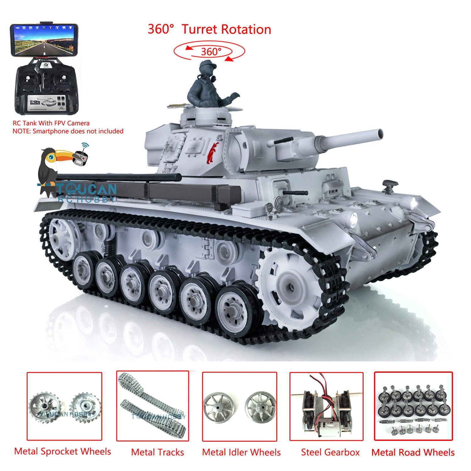 Henglong 1/16 Snow FPV 7.0 Customized Panzer III H RTR RC Tank 3849 Metal Wheels Infrared Combating Transmitter&Receiver Radio Controller Battery