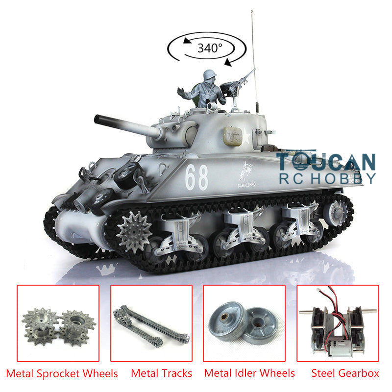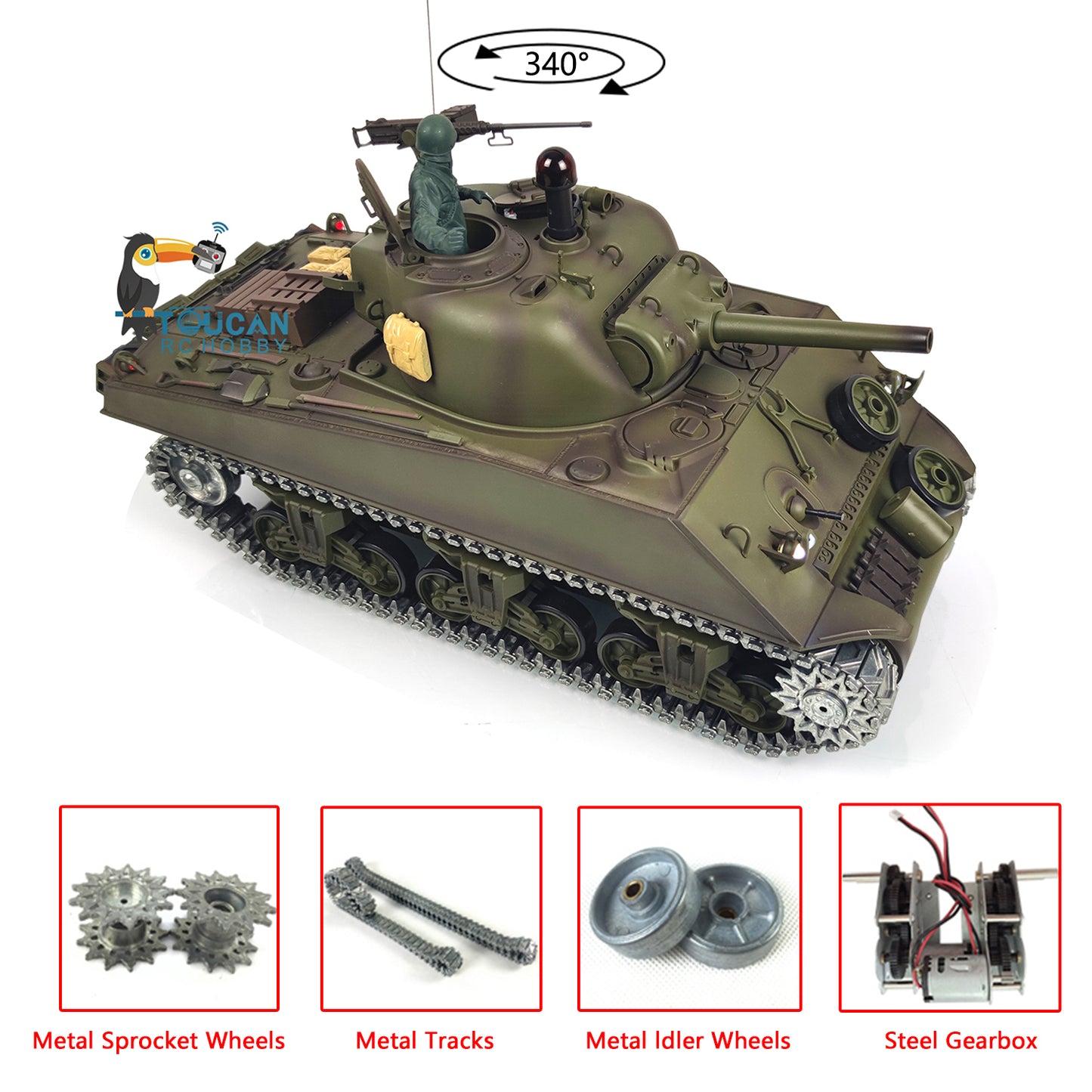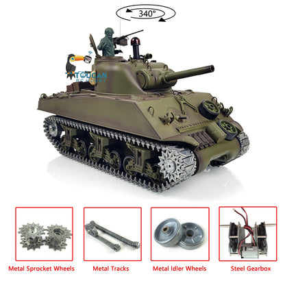 2.4G Henglong 1/16 Scale 7.0 Upgraded M4A3 Sherman RTR Radio Control Tank 3898 Metal Tracks Engine Sound BB Shooting Gearbox