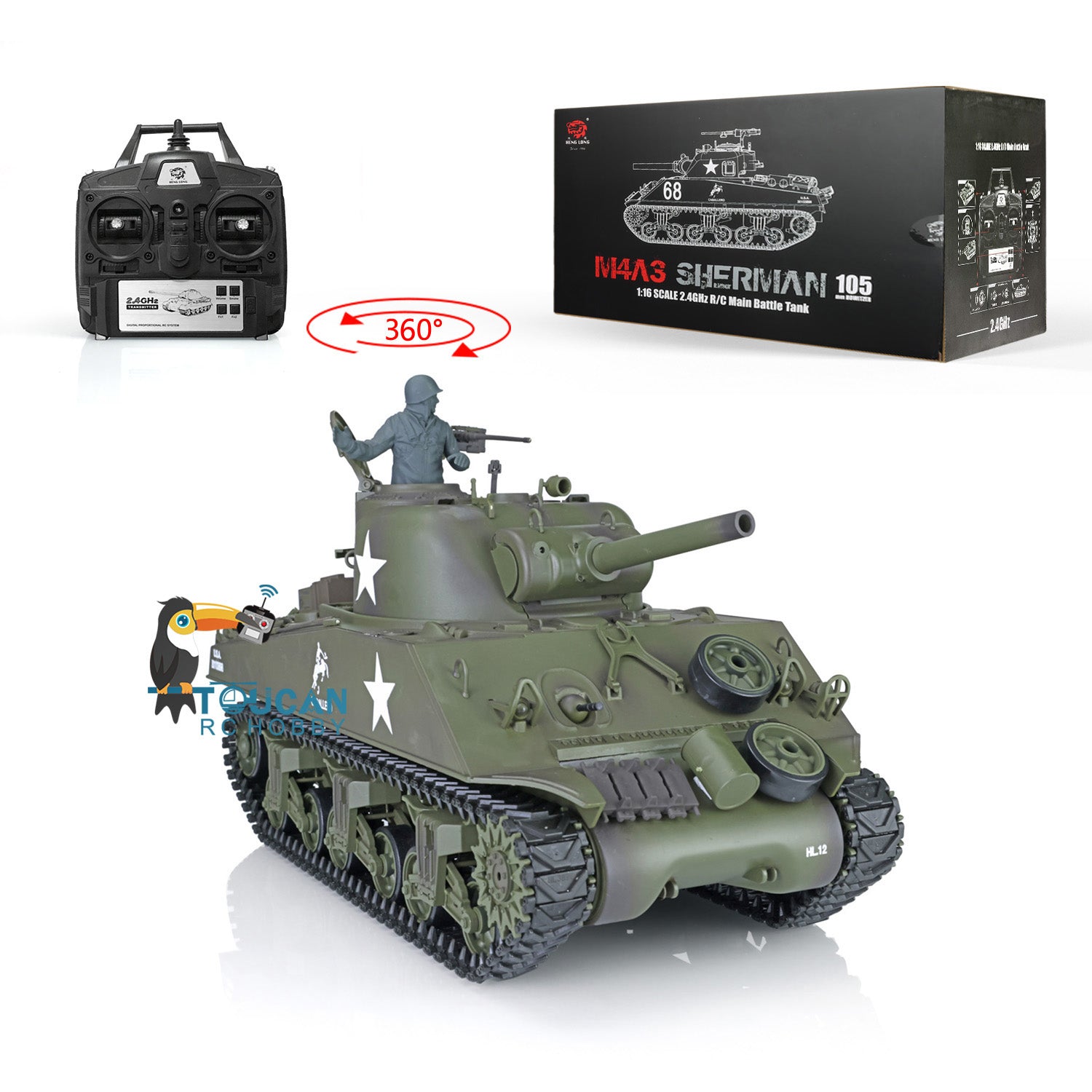 2.4G Henglong 1/16 Scale 7.0 Plastic M4A3 Sherman RTR RC Tank 3898 w/ 360Degrees Rotating Turret Short Barrel Smoking Outdoor Tank