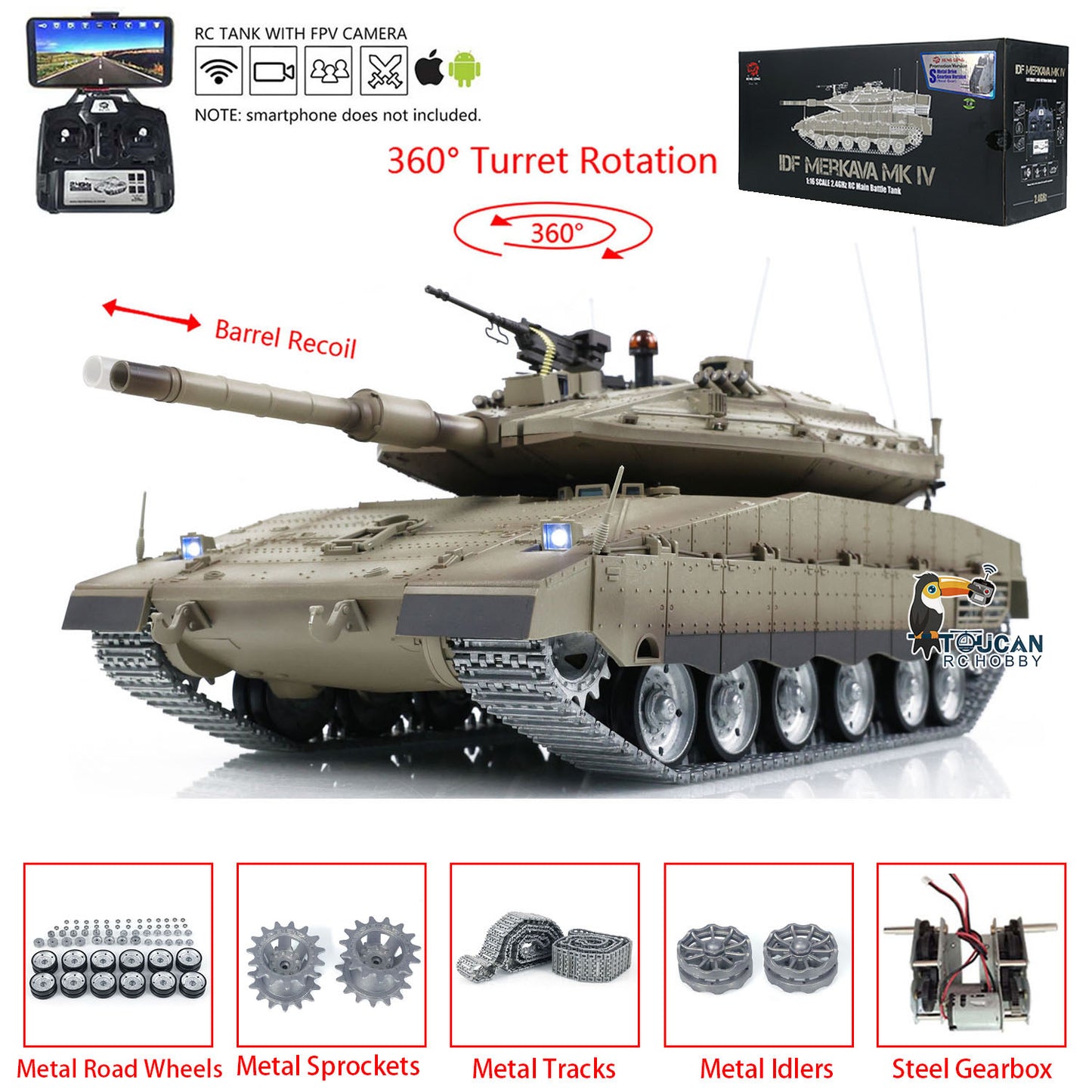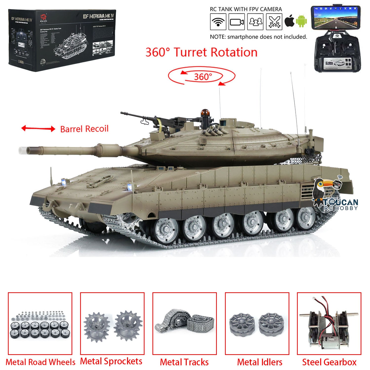 Heng Long Remote Control Tank 1/16 IDF Merkava MK IV Professional Edition Tanks W/ Metal Road Wheels Tracks FPV