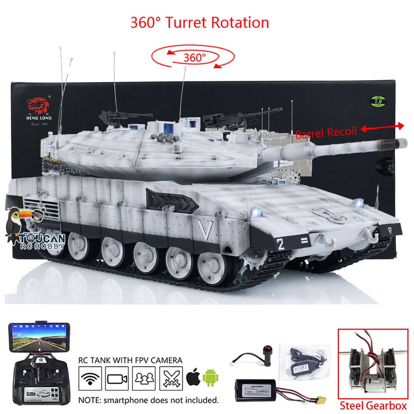 Heng Long 1/16 RC Tanks 3958 Radio Controlled Military Cars IDF Merkava MK IV Metal Driving Gearbox FPV Camera 360
