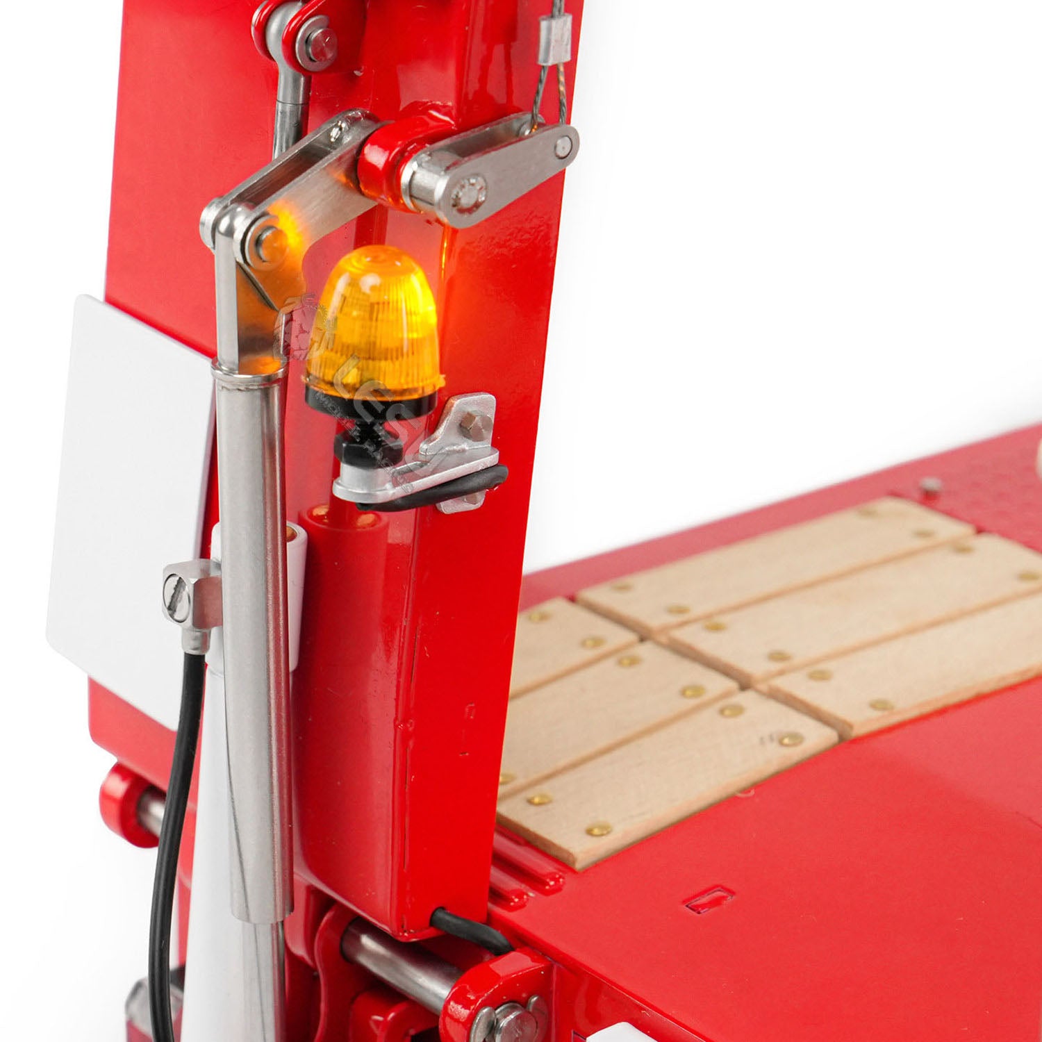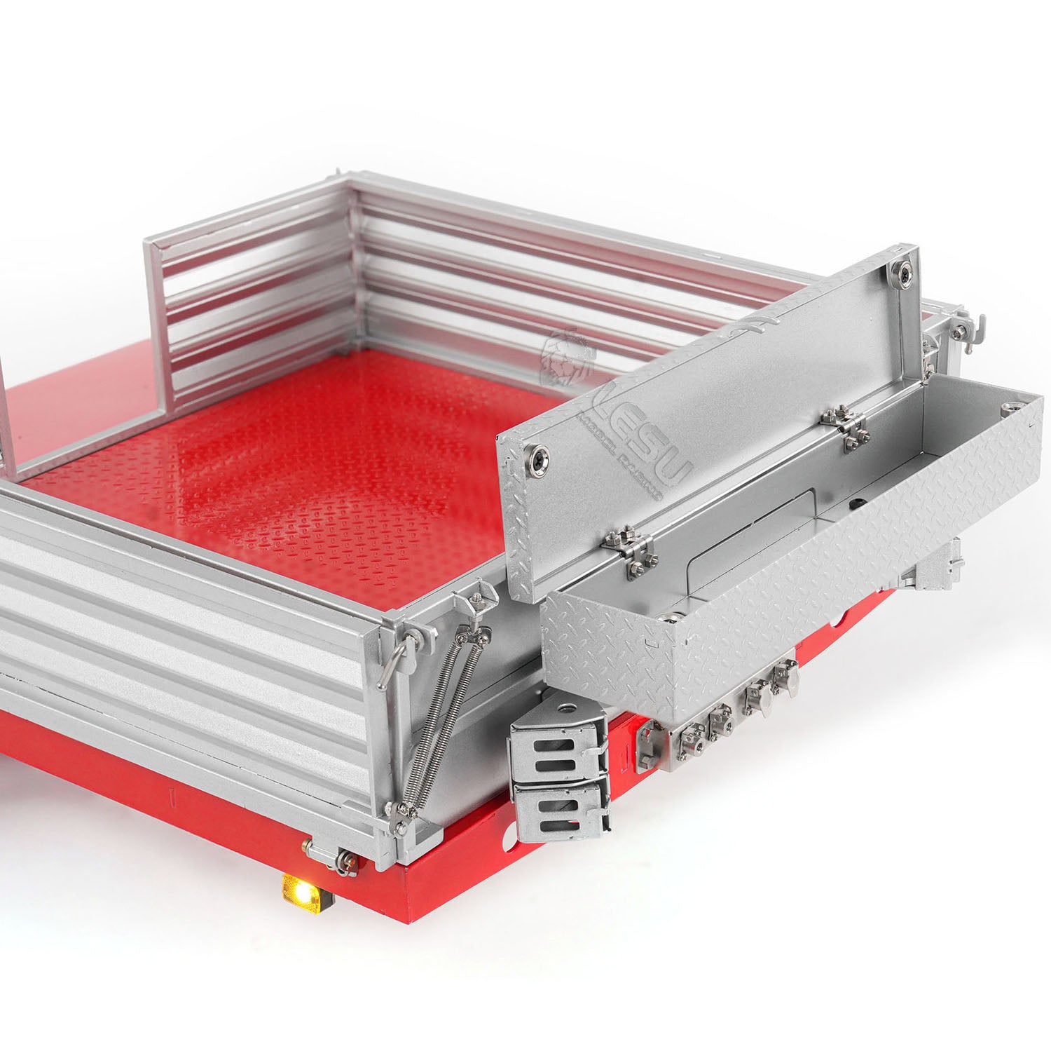 4. The trailer deck is decorated with wooden pedal trim parts, fixed by simulated wire racks. It also has simulated toolboxes on both sides and stainless-steel side rails for added durability and authenticity.