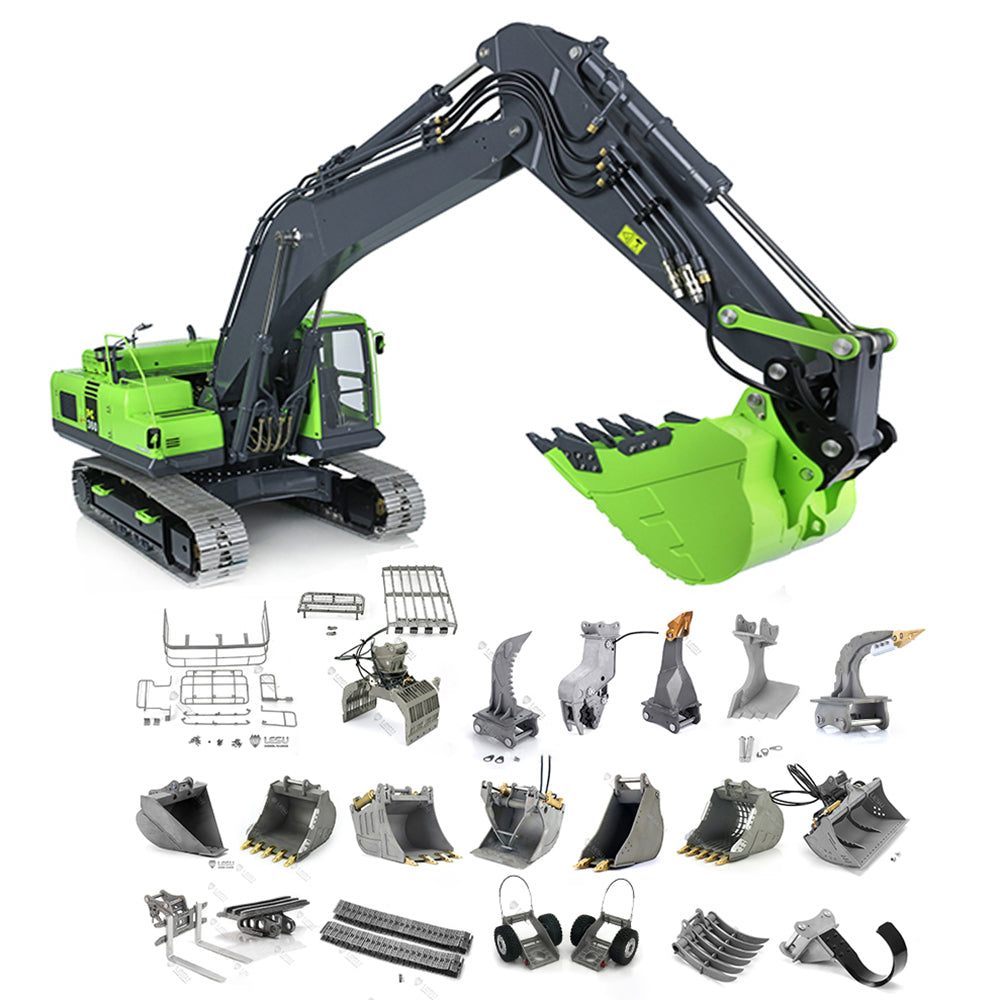LESU 1/14 PC360 RC Hydraulic Excavator Metal Tracks Ripper Pump Grab Bucket fork Bucket Crusher Trailer Digging Tool Rack