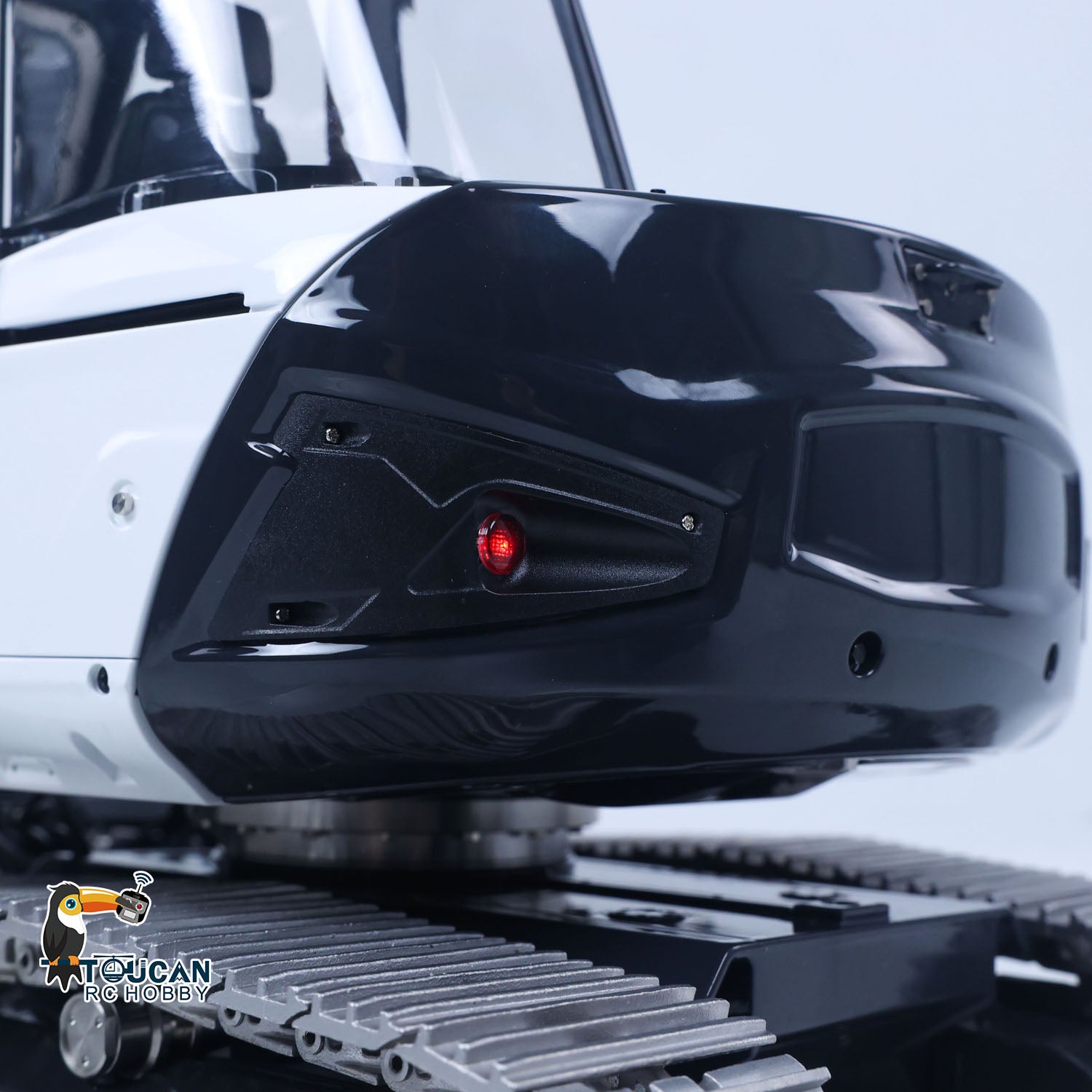 8.A large flip-up hatch is installed on the right side of the working platform for easy replacement of batteries and remote control receivers. The front windshield wiper of the cab is embedded with rubber strips, enhancing playability.