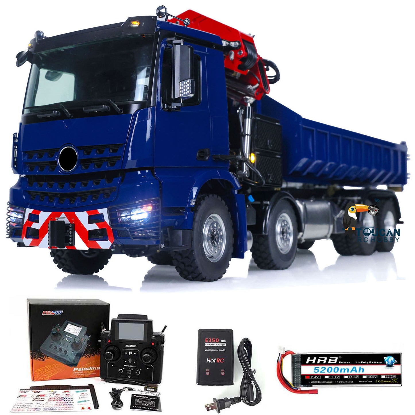1/14 LESU RC 8x8 RTR Painted and Assembled Metal Hydraulic Crane Dumper Tipper Truck Sound Light System ECS Motor