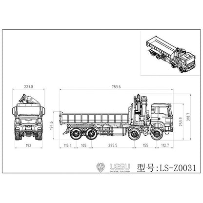 1/14 LESU 8*8 Radio Controlled Roll on/off Hydraulic Truck RC Dumper Tipper Car Model Metal Crane Motor ESC Servo Light Sound System