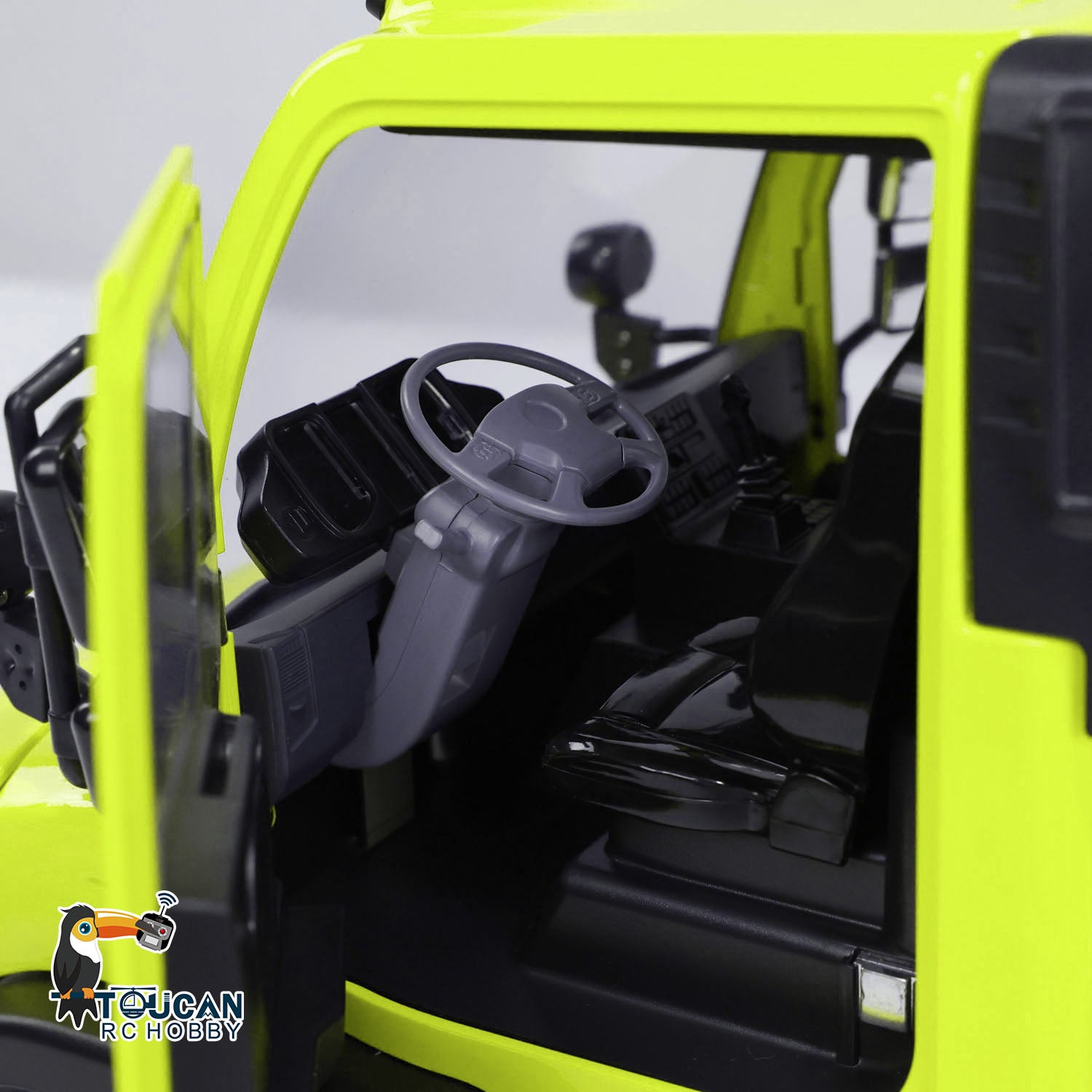 4. The model includes realistic details such as simulated rearview mirrors, chimney, snorkel, windshield wipers, door handles, and interior cabin decorations, faithfully replicating the fine details of a real vehicle.