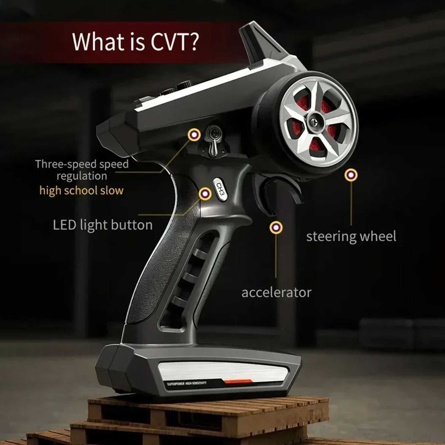 1, Advanced Remote Control System: The 2.4G full - scale synchronous remote control system features full - scale throttle and steering, stepless speed change, enabling high - speed driving, rapid acceleration, deceleration, braking, reversing, and precise left/right turns.