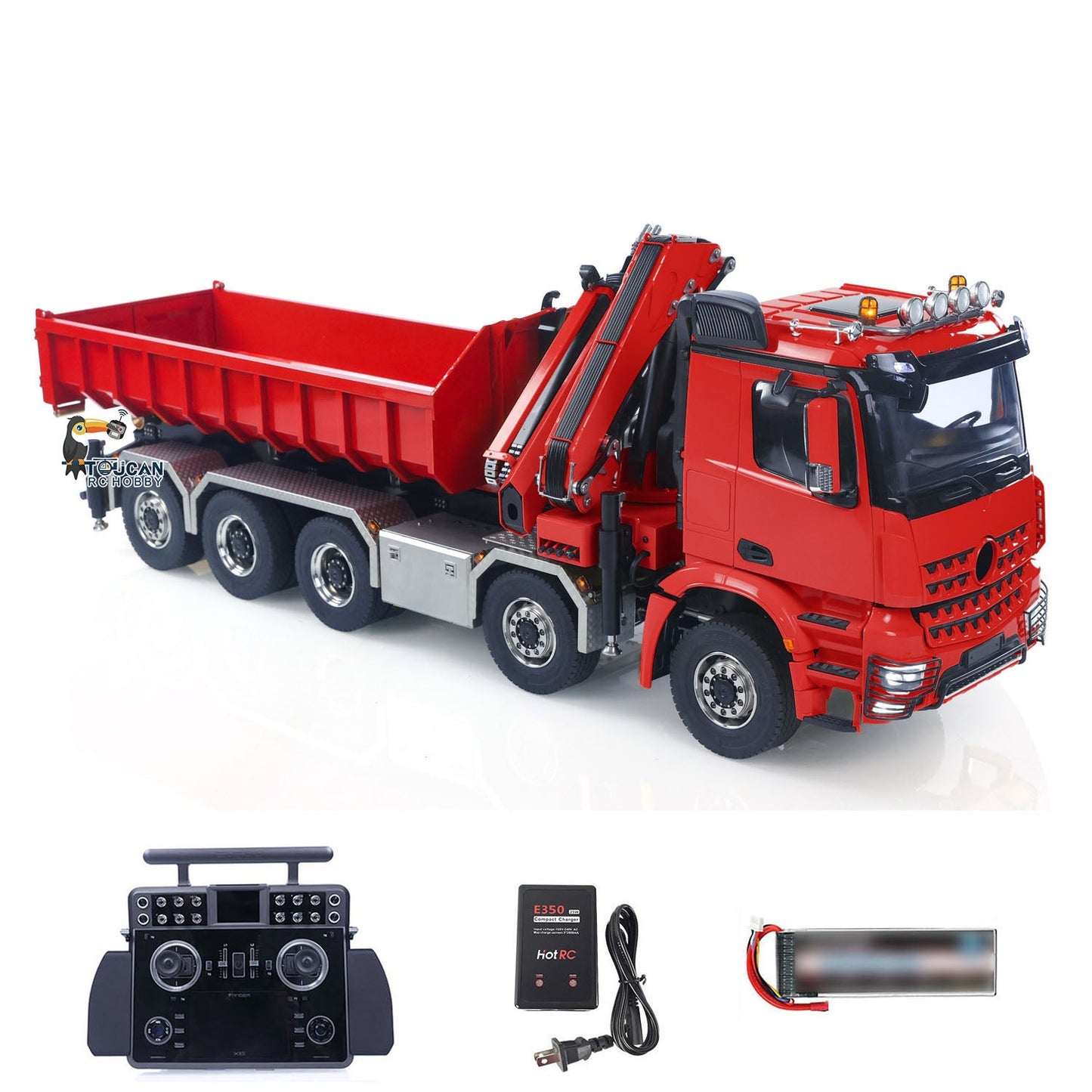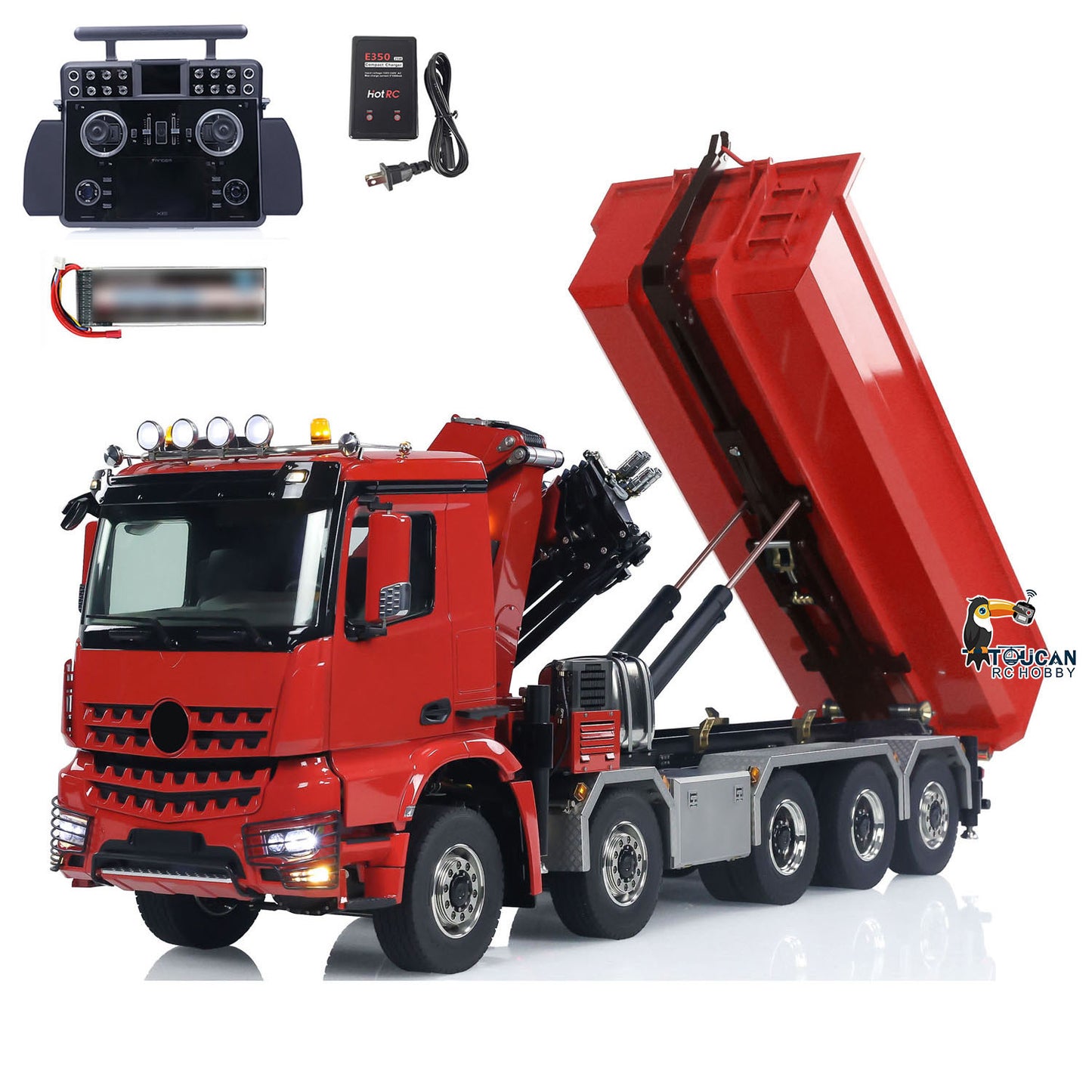 1/14 10x10 RC Hydraulic Crane Dump Truck Radio Control Full Dumper Lorry with U-shaped Short High Standard Bucket Timber Flatbed
